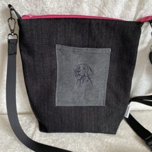 Das Stickbild ist eine Blumenwiese ,dies ist eine aufsetze Tasche mit Reisverschluss .