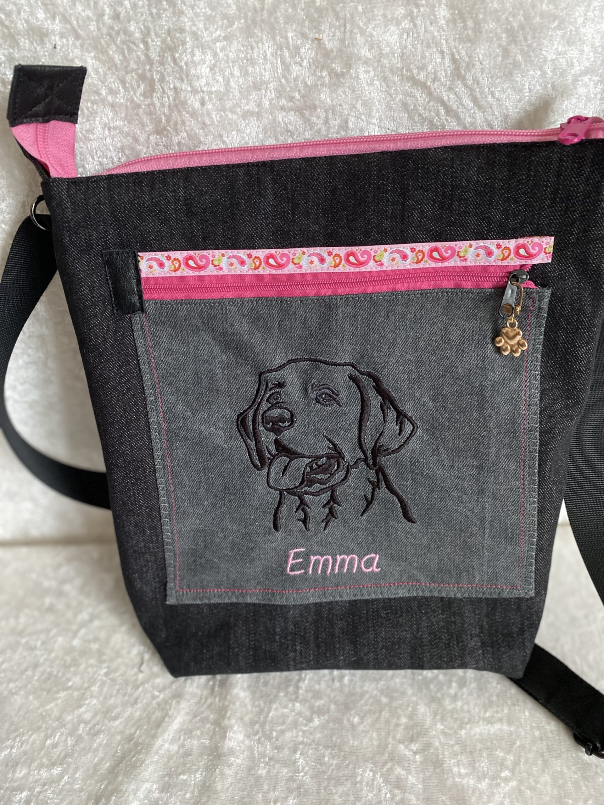 Die Tasche ist aus Jeansstoff angefertigt ganz nach ihren Wünschen und wird nur auf Bestellung angefertigt.
